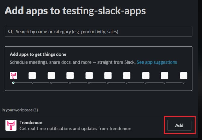 3. In the Add apps... page, click the Add button next to Trendemon: